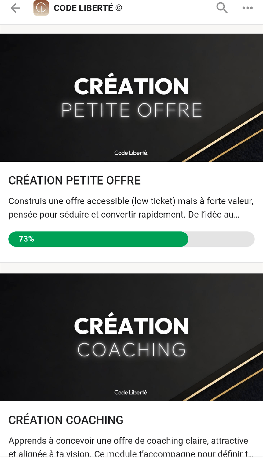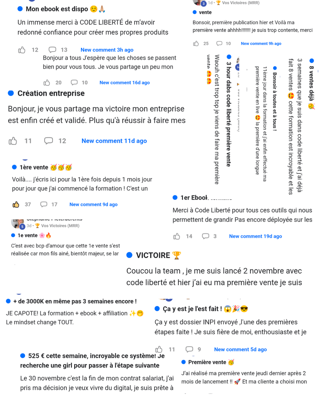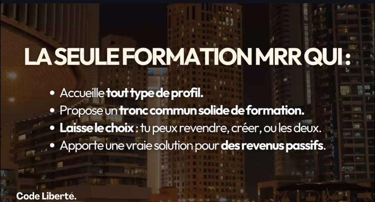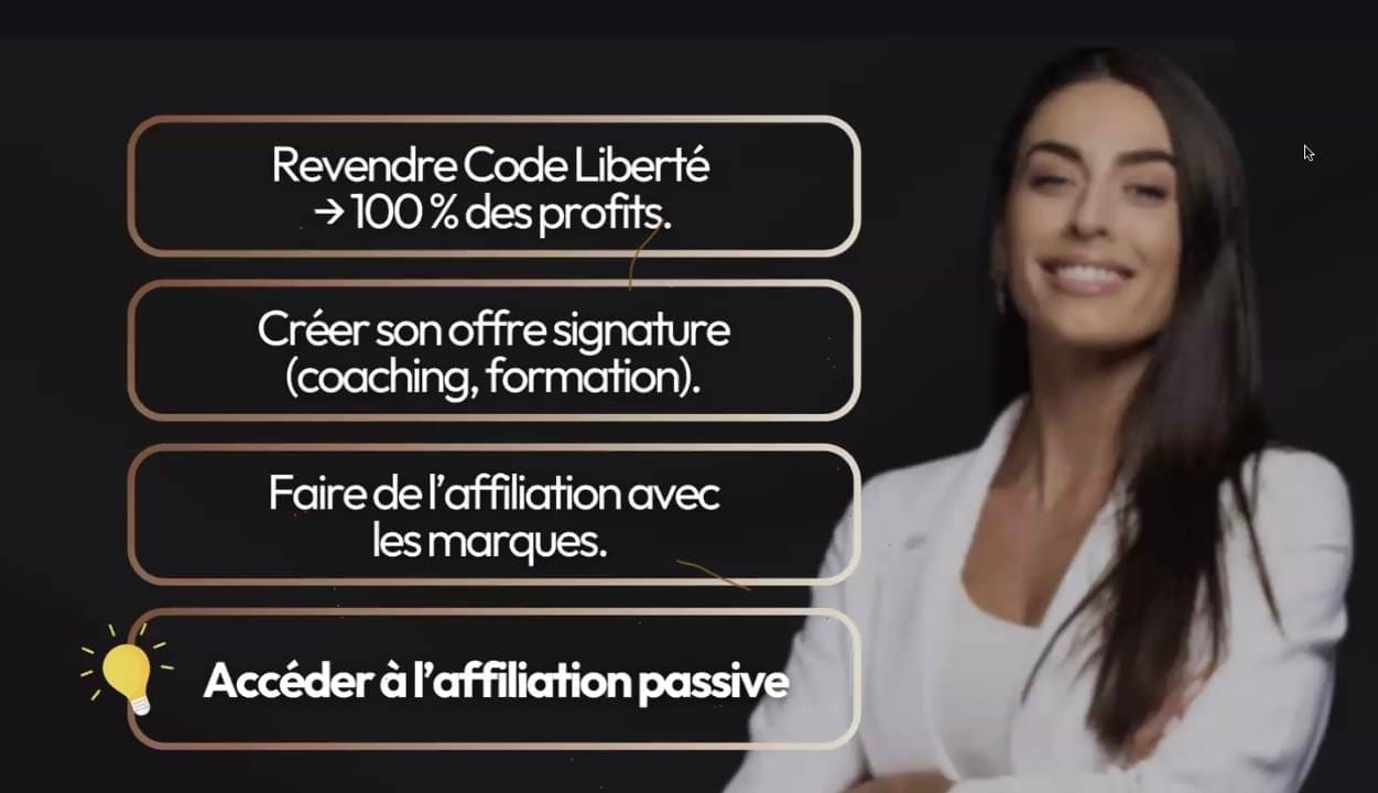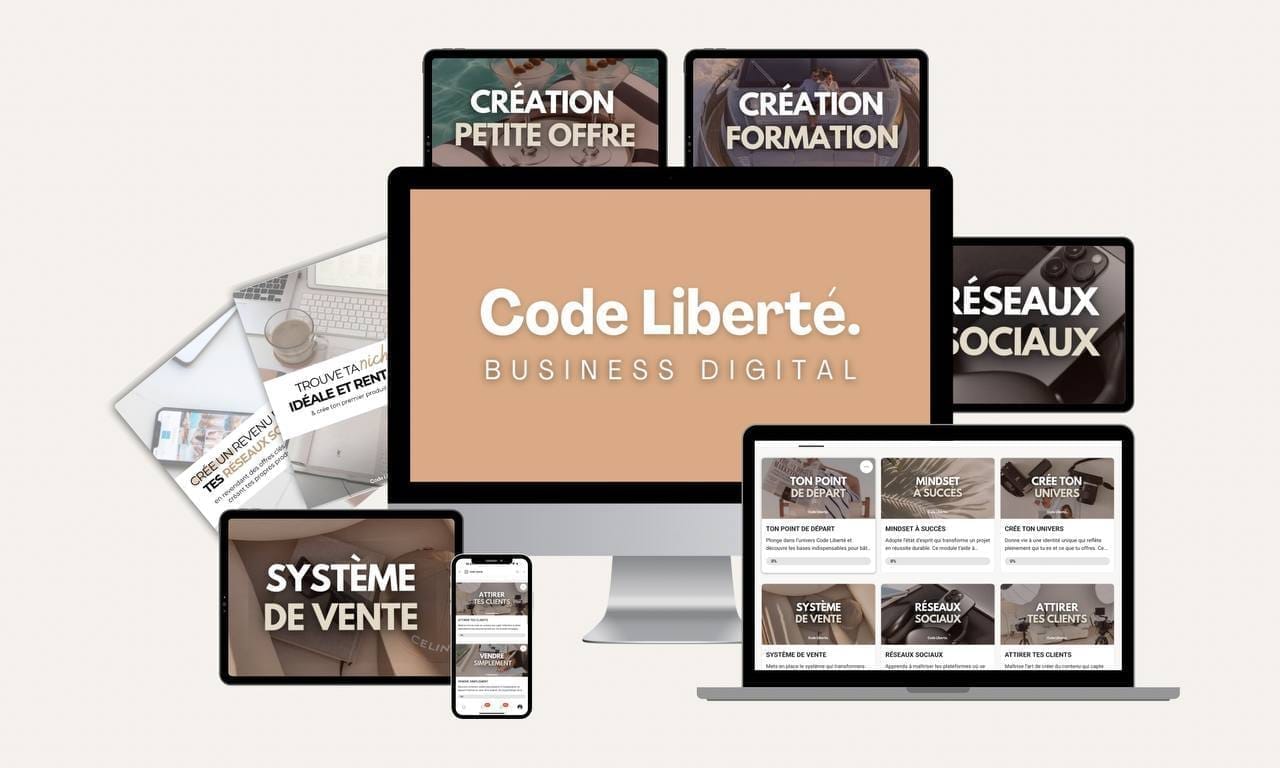 Aujourd’hui, j’ouvre un nouveau chapitre avec Code Liberté. Ma mission : aider un maximum de personnes à vivre du digital, que ce soit en revendant ou en créant leurs propres produits digitaux (ebooks, formations, coaching, etc.).